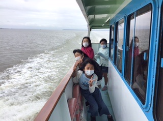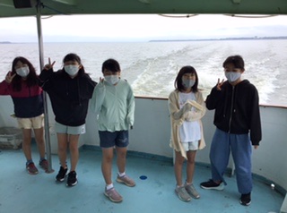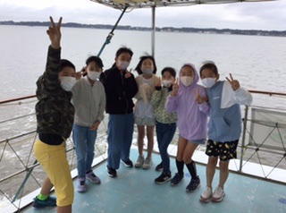 船内自由行動です。水しぶきをあげて進む船の上ではしゃいでます。