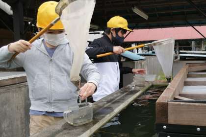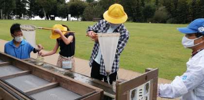 動物プランクトンコーナー 「どれどれ?」 「うわ〜取れた!動いてるぅ」 「かわい〜♡」