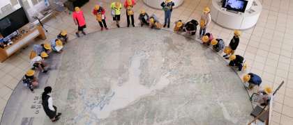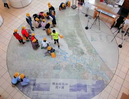 エントランスの手描き地図の上で