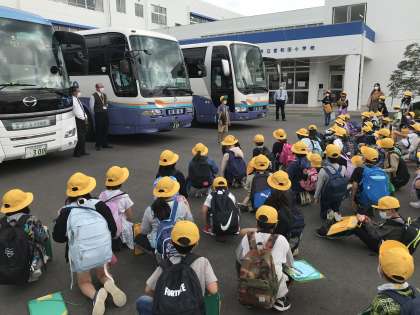 いい天気になりました。 待ちに待った校外学習! 今から大洗アクアワールドに出発です。