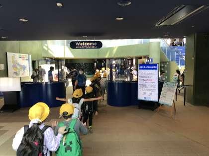 水族館に到着しました。 チンアナゴの消毒器で、手指の消毒をして、いよいよ館内に入場です。