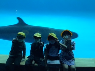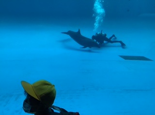 オーシャンスタジアムの下でいるかとピース(o^^o)