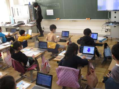 一番右側の写真は4年生の国語、物語の読み取りの学習。