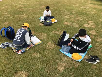 偕楽園の園内を歩き回ったので、みんなお腹が空きました。 「いただきます♪」