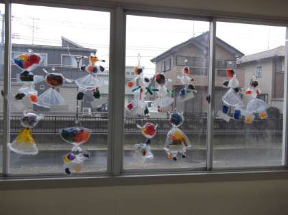 1の2の図工では・・・ 公開日 2022/01/12 更新日 2022/01/12 1年生 「ひかりのくにのなかまたち」で各自が一生懸命考えて作った「きらきら○○」の作品を廊下のガラス窓に飾りました。とてもかわいい作品ができましたね♪