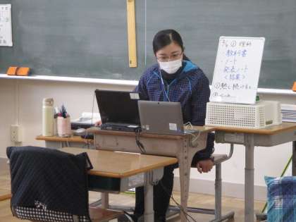 学びを止めないために・・・ 公開日 2022/02/04 更新日 2022/02/04 学校 臨時休業期間が続いていますが、子どもたちはオンラインで学びを継続しています。本校職員も、効果的なオンライン授業の方法をいろいろと試しながら、画面越しの子供たちに語りかけます。
