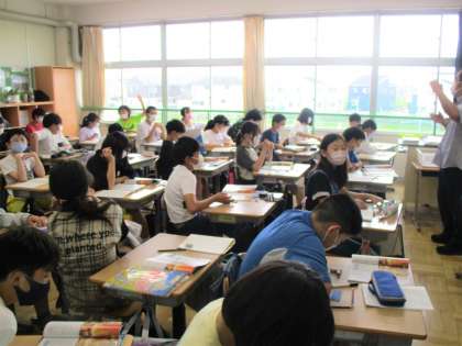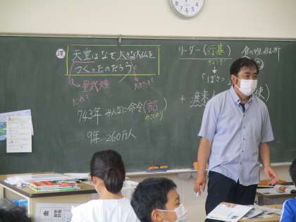 6年生の社会の授業です。歴史分野の学習です。今日は、奈良時代の大仏はなぜ建立されかのか?という学習課題に取り組んでいます。動画を見て、自分だったら…という立場を考えながら実感を伴いながらの工夫した授業です。