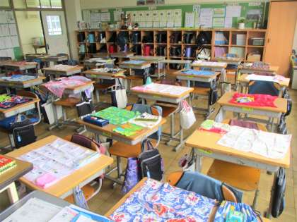 6年生が水泳学習に出かけました。教室を見ると、帰ってきてから給食の準備に素早く入れるような気遣いが見られました。生活における「残心」です。素晴らしい!