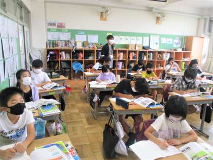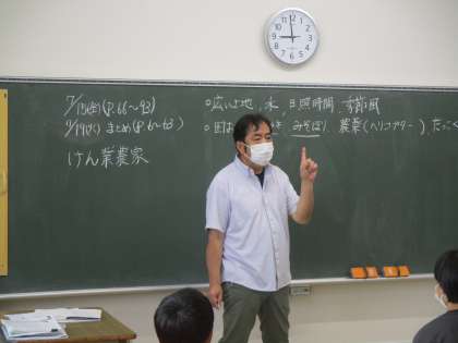 5年生の社会の授業です。地理分野です。農業についてのまとめの学習です。みんな先生の話をしっかり聴いて、日本の農業についてまとめています。頑張れ!