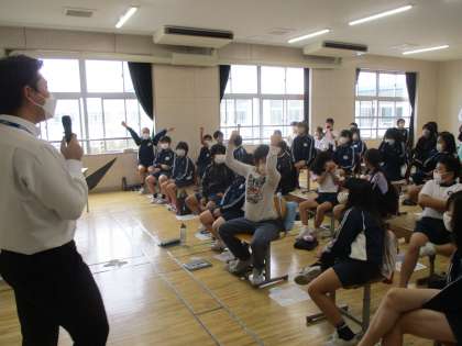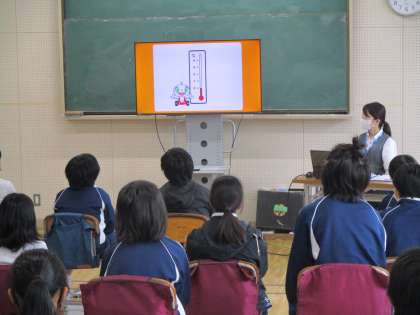 3・4時間目、5年生は総合的な学習の時間を活用して、「トヨタ未来スクール」を受講しました。トヨタのスタッフ4名が講師となり、車づくりとSDGsについて、画像や動画、」ゲームを活用しながら進めていただきました。