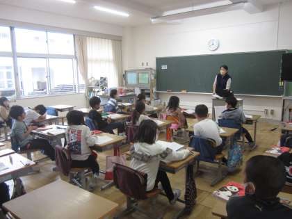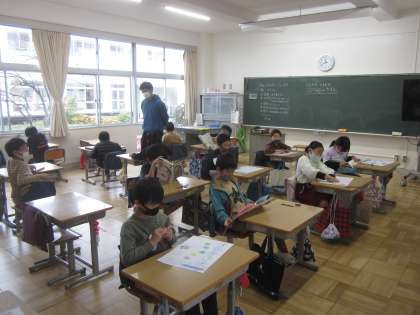 2年生は1組も2組も国語の授業です。1組はテストを頑張っていました。2組は音読をしっかり頑張っていました。