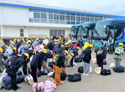 修学旅行 学校に無事到着 解散式
