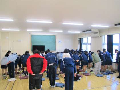 朝の会前に宮和田ホールで行いました。私(校長)からも、仲間たちの素晴らしかったことと、この学びを生かすこと、卒業までこれまで以上にしっかり精進していくことを伝えさせていただきました。
