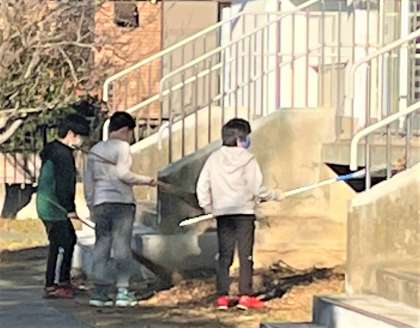 6時間目、5年生のもう一つのクラスが体育館や校舎周辺の落ち葉を集めてくれました。ずいぶんスッキリしました。