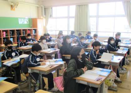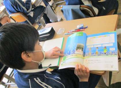 5年生の算数の授業です。令和5年度初めての強化授業です。そのスタートは…算数でした。整数と少数の単元から始まりました。みんな集中して先生の話を聴いて、しっかり考えています。頑張れ!