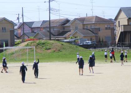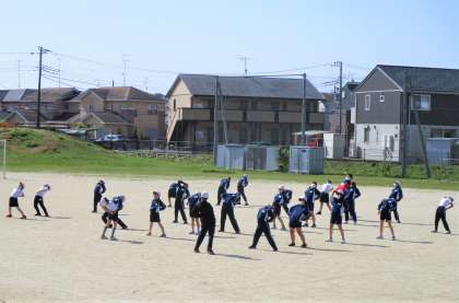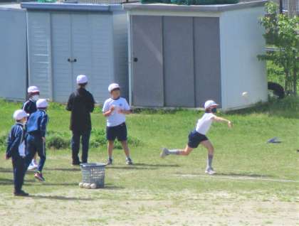 5年生の体育の授業です。今日は、新体力テストに向けて、ソフトボール投げに取り組んでいます。準備体操の声出しは、昨年度同様元気がいいですね。みんがんばってます!