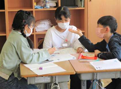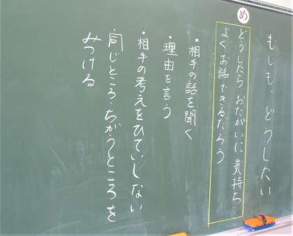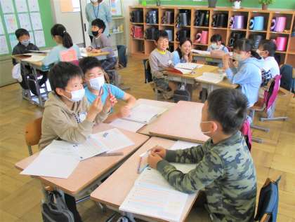 4年生の国語の授業です。「もしも、どうしたい」の単元です。今日は「どうしたらお互いに気持ちよくお話ができるだろう」ということを、グループになって協働的に学んでいます。みんな積極的にグループ活動に参加しています。