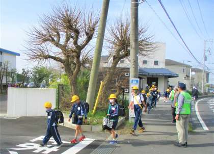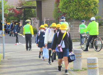 班長さんがリーダーシップを発揮し、一列で歩く速さも気を遣いながら登校しています。