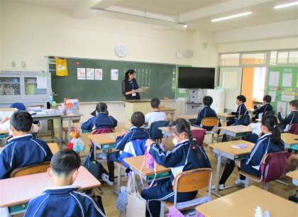 4年生の朝の会の様子です。姿勢正しく、心で先生のお話を聴いています。素晴らしい!