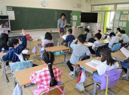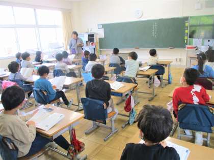 2年生の国語の授業です。音読をリズムよく行っています。みんな集中しています。素晴らしい!