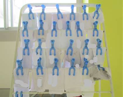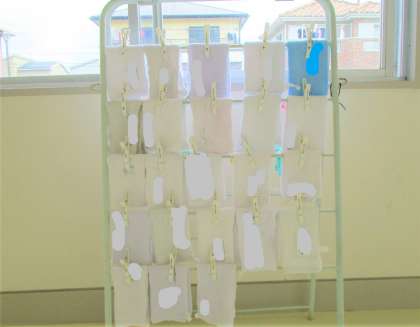 2年生の雑巾掛けです。揃っていることに、使った後の気遣いを感じます。