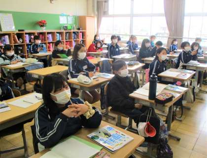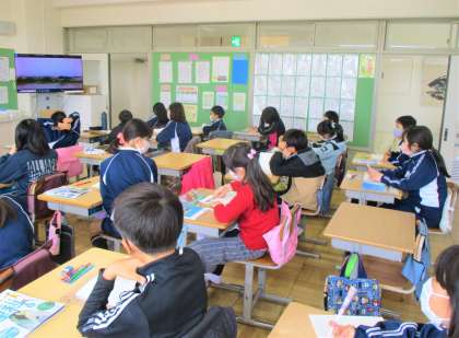 5年生の理科の授業です。「天気と情報」の単元です。今日は、天気の変化について、観測の方法について学んでいます。みんな一生懸命取り組んでいます。