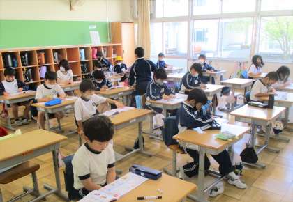 2年生の登校後のようです。8時5分を待たずに、学習の準備ができています。素晴らしい!