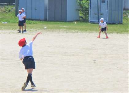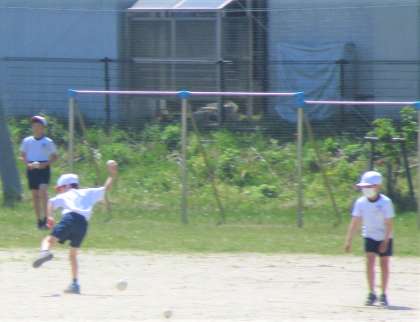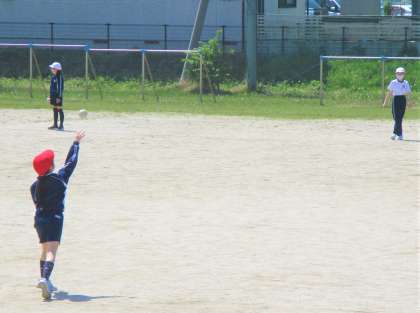 4年生の体育の授業です。今日は、新体力テストのソフトボール投げに取り組んでいます。茨城県全体で投力はずいぶん前から課題となっています。普段の休み時間や体育の授業等で「投げること」に慣れていってほしいと思います。みんな頑張ってます!
