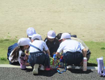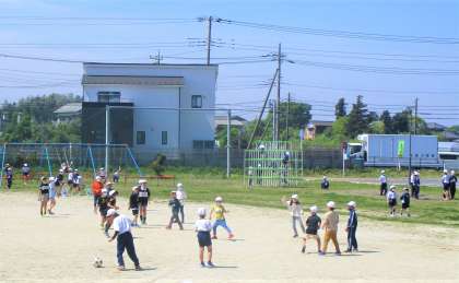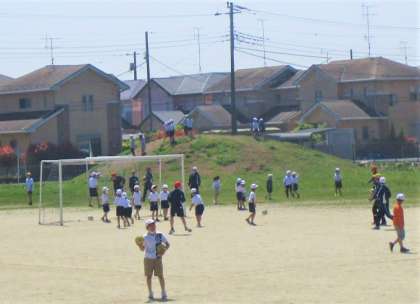 天気がいいですね。しかし、日差しが強く、気温も上がってきています。しっかり運動した後は、必ず水分補給ですね。みんな気持ちよく運動しています。