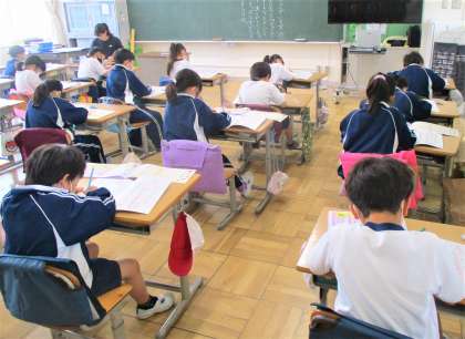 2年生の朝の会後、学習している様子です。今日は、漢字ドリルを一生懸命行っています。みんな集中して取り組んでいます。さすが!