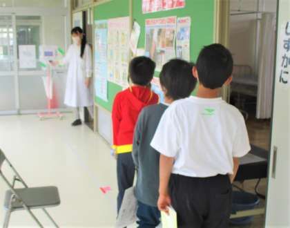 今日は、4年生で視力検査が行われています。みんな行儀よく、静かに待ちしっかり受検しています。