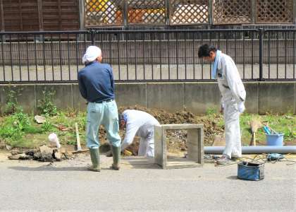 いつも雨が降ると大きな水たまりができる校舎北側のところを水が流れるように工事をしてくださっています。市教委の計らいです。ありがとうございます!