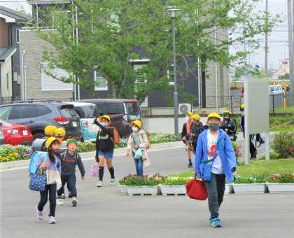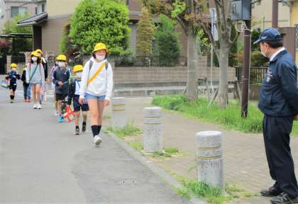 今日も安全に登校できています。班長さんや副班長さんのリーダーシップのお陰で、1列できちんと並んで登校しています。班長さん、副班長さん、ありがとう!