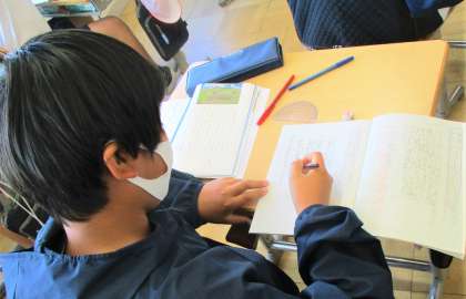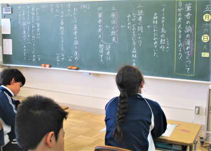 6年生の国語の授業です。説明文「イースター島にはなぜ森林がないのか」を読んでいます。今日は、筆者の論の進め棚についてどのような工夫をしているか考えています。みんな集中して取り組んでいます。素晴らしい!