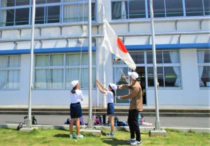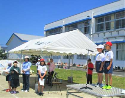 透き通るような青空のもと、1回目の全体練習が行われました。集合も早く、開始時間より早めに始めることができました。それぞれの役割をしっかり果たしていました。1回目とは思えたいくらい素晴らしい態度でした。暑さで熱中症も心配されましたが、途中で水分補給も入れて開会式・閉会式の練習すべてができました。素晴らしい集中力でした!