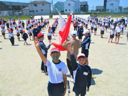 透き通るような青空のもと、1回目の全体練習が行われました。集合も早く、開始時間より早めに始めることができました。それぞれの役割をしっかり果たしていました。1回目とは思えたいくらい素晴らしい態度でした。暑さで熱中症も心配されましたが、途中で水分補給も入れて開会式・閉会式の練習すべてができました。素晴らしい集中力でした!