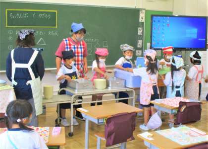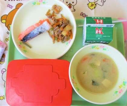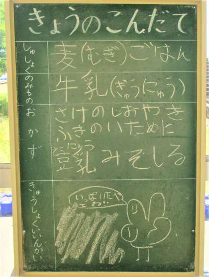 1年生の給食準備・配膳の様子です。ずいぶん慣れてきましたね。当番の仲間たちが一生懸命準備・配膳してくれています。
