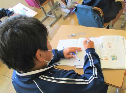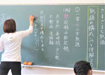6年生の国語の授業です。「さまざまな熟語」の小単元です。今日は、熟語の構成について考え、理解を深めています。みんな集中して取り組んでいます。