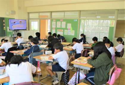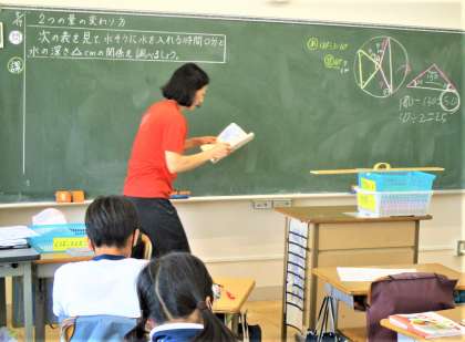 5年生の算数の授業です。「2つの量の変わり方(割合)」の単元に入りました。大事な学習です。みんな一生懸命学んでいます。頑張れ!