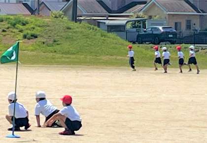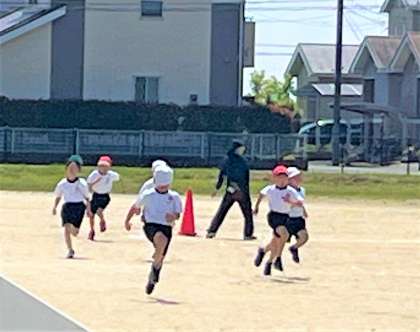 1・2年生の運動会の練習の様子です。仲間たちの体調等に気配りしながら、障害走の練習をしています。頑張れ!