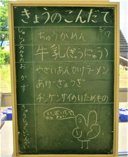 ※メニューは給食委員会の常時活動で昇降口前黒板に記入してくれています。ありがとう!