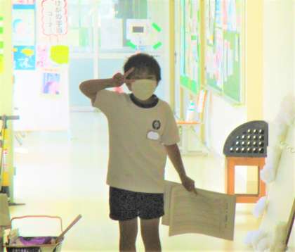 健康観察板を保健室前に置きに行き、出欠黒板に今日の出欠を記入してくれています。今日の一番でしたね。頑張ってます!