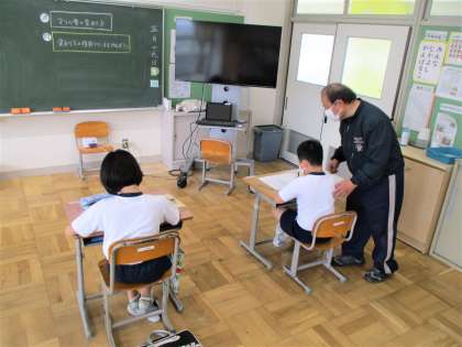 授業の様子6 公開日 2023/05/19 更新日 2023/05/19 学校 のびやか学級の算数の授業です。今日は、前時までの復習プリントから授業が始まっています。しっかり考え、答えを導き出しています。