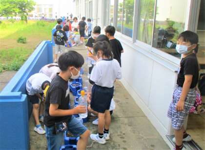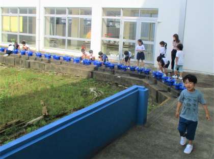 1年生はアサガオを、2年生はミニトマトを栽培しています。毎朝、お水と愛情をたっぷり注いでいます。