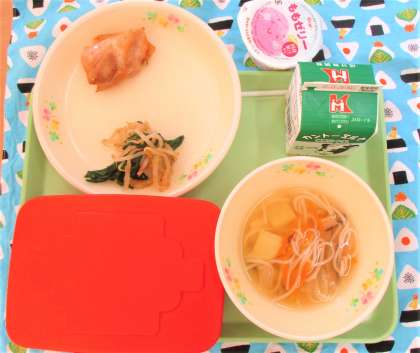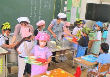 1年生の給食準備・配膳の様子です。当番の仲間たちが手際よく配膳をしてくれています。だいぶ慣れてきましたね。素晴らしい!