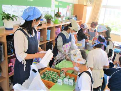 4年生の給食準備・配膳の様子です。先生から指示されなくとも、自分たちだけで相談しながら準備・配膳をスムーズに行っています。さすが、中学年のリーダーです!