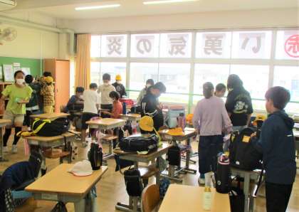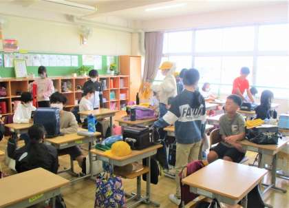 6年生の登校後の様子です。和やかな時間が流れています。