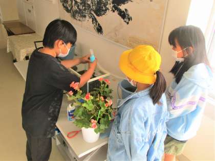 5年生の仲間たちが、登校後、飼育しているメダカの水槽をきれいにしてくれています。メダカも喜んでいますね。