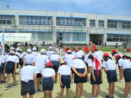 第43回運動会をしっかりリードしてくれた、第43代の6年生たち。素晴らしい活躍ぶりでした。ありがとうございました。両担任の先生のお話の後、両団長がしっかり〆てくれていました。両団長、すばらしい姿でした!6年生たち、最高です!