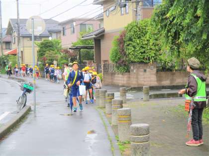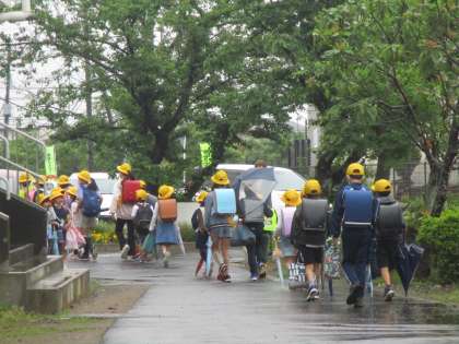 ちょうど登校時には雨がやみました。安全に登校することができています。